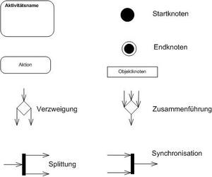 In der nebenstehenden Grafik werden die wichtigsten Bestandteile eines Aktivitätsdiagramms vorgestellt.