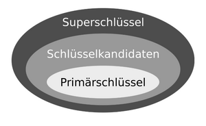 Bestimmen einige Attribute einer Relation eindeutig die Werte aller Attribute der Relation, so spricht man von einem Superschlüssel. Das bedeutet, dass jedes Tupel dieser Relation eindeutig durch die Werte dieser Attribute bestimmt ist.