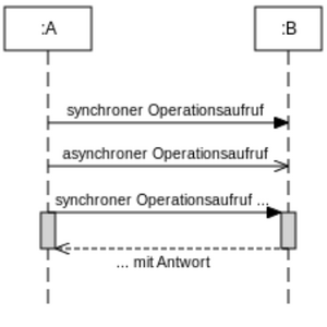 Programmfortführung ein, bis er eine Antwort erlangt hat. Synchrone Nachrichten werden durch einen Pfeil mit gefüllter Spitze dargestellt.