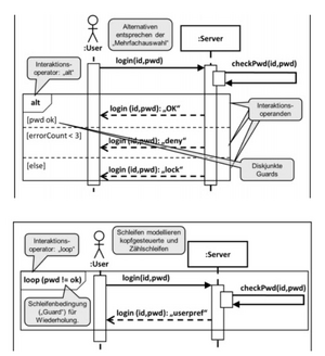 Auch Kontrollstrukturen lassen sich durch ein Sequenzdiagramm darstellen (siehe Zeichnung).
