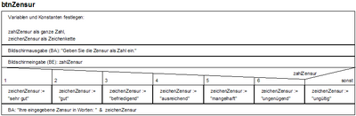 Folgendes Struktogramm beschreibt einen Algorithmus, der eine Zahl in eine textbasierte Note umwandelt: