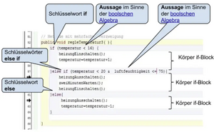 Eine Verzweigung ist eine wichtige Kontrollstruktur in der Programmierung. Sie legt fest, welcher von zwei (oder mehr) Programmabschnitten, abhängig von einer (oder mehreren) Bedingungen, ausgeführt wird. Verzweigungen können in der Java-Programmierung nur im Körper von Methoden und Konstruktoren implementiert werden.
