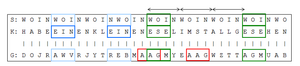 Da dies ein wenig dünn ist und die Schlüssellänge 4, 8 oder 11 sein könnte, müssen weitere Wiederholungen gesucht werden. Nachfolgend wurde besonderer Augenmerk auf längere Wiederholungen gelegt, die aussagekräftig sind, auch wenn sie sich nicht oft wiederholen, weil sie weniger wahrscheinlich zufällig sind: